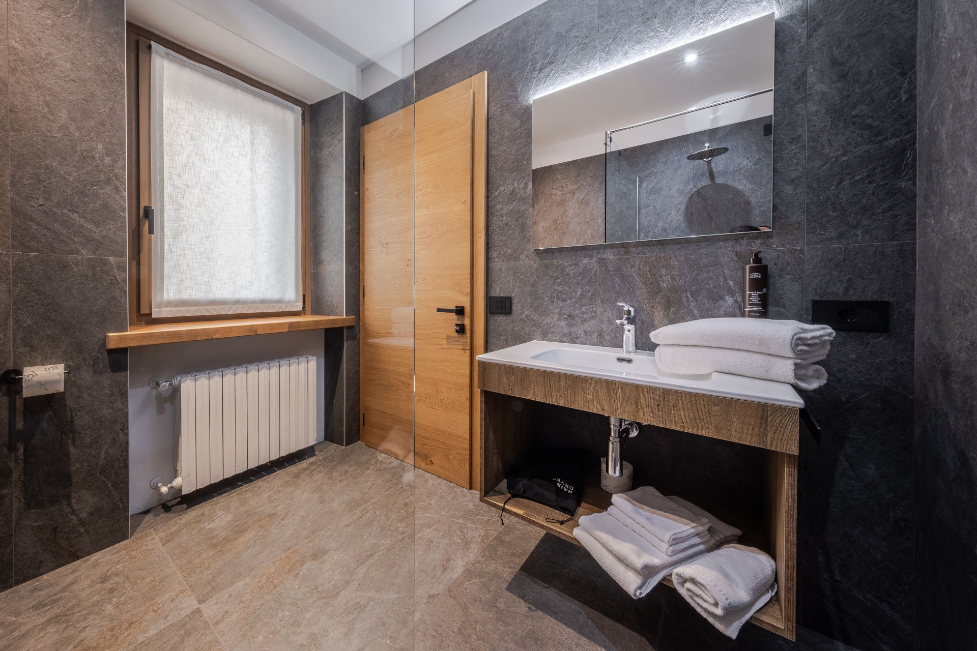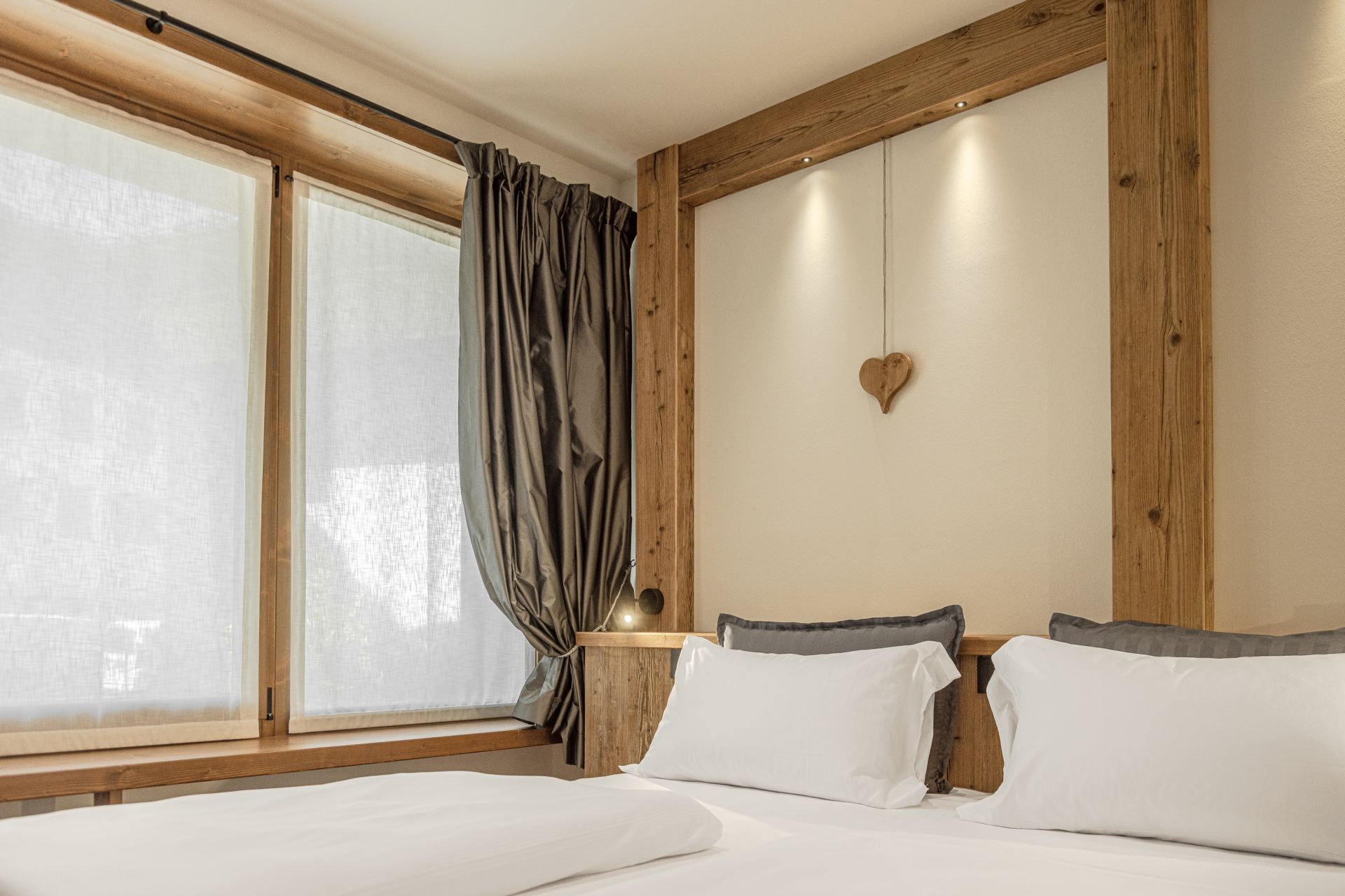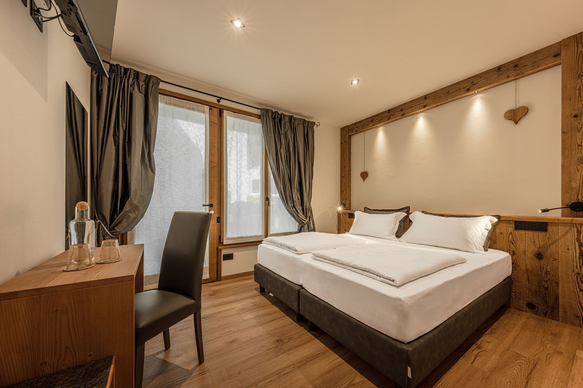 Le nostre camere sono dotate di tutti i comfort moderni, inclusi Smart TV, cassaforte e connessione Wi-Fi. Ogni camera è luminosa e spaziosa e dotata di bagno privato. In ogni stanza il nostro arredatore ha inserito un elemento di legno di cirmolo per infondere questa inebriante fragranza, dalle proprietà benefiche, in tutta la stanza. Tutte le camere si trovano al piano terra.